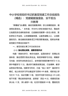 中小学校党组织书记抓基层党建工作总结报告(精选):党建赋能强堡垒,实干担当兴教育.doc