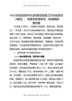 中小学校党组织书记抓基层党建工作总结报告(精选):党建领航育桃李,铸魂赋能强校基.doc