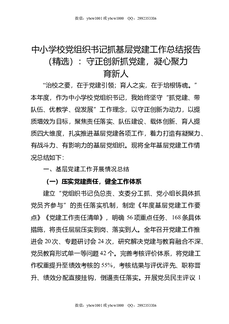 中小学校党组织书记抓基层党建工作总结报告(精选):守正创新抓党建,凝心聚力育新人.doc