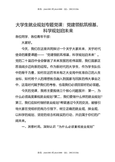 大学生就业规划专题党课:党建领航筑根基,科学规划启未来.doc