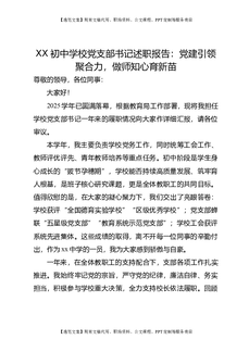 XX初中学校党支部书记述职报告:党建引领聚合力,做师知心育新苗.doc