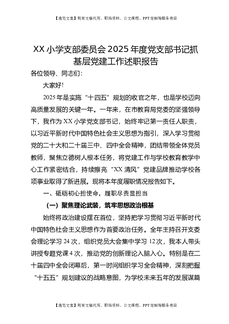 XX小学支部委员会2025年度党支部书记抓基层党建工作述职报告.doc