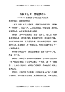 金秋X月X,情暖敬老心——2025年重阳节小学生国旗下讲话稿.docx