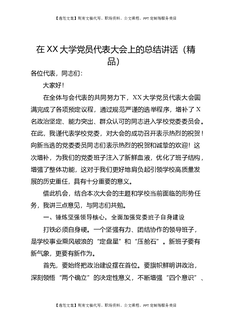 在XX大学党员代表大会上的总结讲话(精品).doc