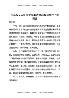 在高校2025年党风廉政警示教育会议上的讲话.doc