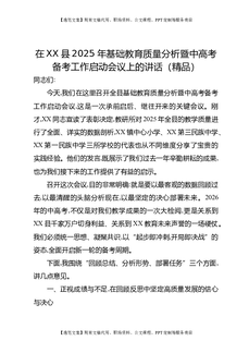 在XX县2025年基础教育质量分析暨中高考备考工作启动会议上的讲话(精品).doc