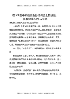 在XX四中新教师业务培训会上的讲话:新教师成长的12345.docx