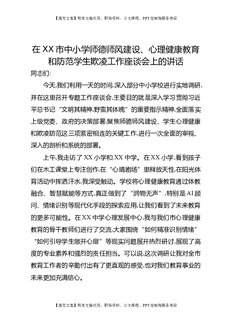在XX市中小学师德师风建设、心理健康教育和防范学生欺凌工作座谈会上的讲话.doc