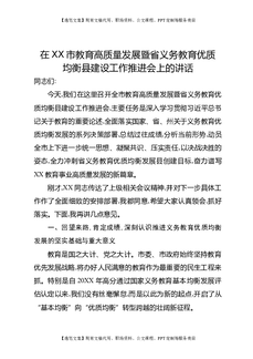 在XX市教育高质量发展暨省义务教育优质均衡县建设工作推进会上的讲话.doc