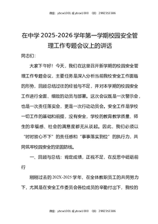 在中学2025-2026学年第一学期校园安全管理工作专题会议上的讲话.docx
