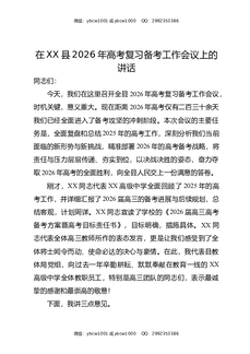在XX县2026年高考复习备考工作会议上的讲话.docx