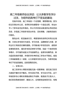 高二年级教师会议讲话:让大多数学生学分过关,为明年的高考打下坚实的基础.docx