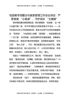 校园餐专项整治与食堂管理工作会议讲话:严管食堂“小餐桌”,守护成长“大健康”.docx
