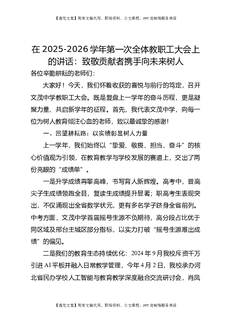 在2025-2026学年第一次全体教职工大会上的讲话:致敬贡献者携手向未来树人.doc