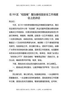 在XX区“校园餐”整治暨校园安全工作调度会上的讲话.doc