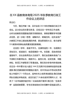 在XX县教育体育局2025年秋季教育行政工作会议上的讲话.doc