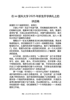 在XX医科大学2025年新生开学典礼上的讲话稿.docx