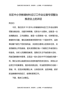 在区中小学教辅材料征订工作会议暨专项整治推进会上的讲话.docx