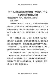 在X小学五周年办学成果展上的讲话:五大关键词点亮教育新图景.docx