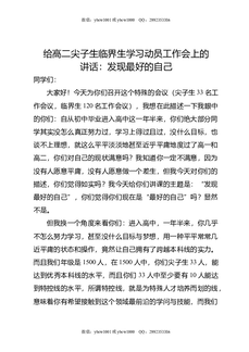 给高二尖子生临界生学习动员工作会上的讲话:发现最好的自己.doc