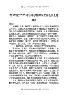 在XX区2025年秋季学期开学工作会议上的讲话.docx