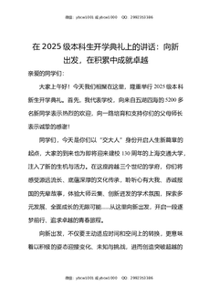 2025级本科生开学典礼上的讲话向新出发在积累中成就卓越.docx