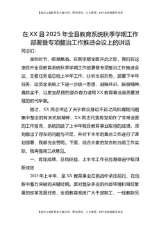 在XX县2025年全县教育系统秋季学期工作部署暨专项整治工作推进会议上的讲话.doc