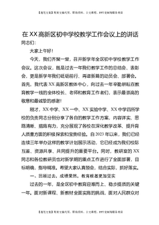 在XX高新区初中学校教学工作会议上的讲话.doc