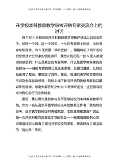 在学校本科教育教学审核评估专家交流会上的讲话.doc