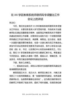 在XX学区教育系统师德师风专项整治工作会议上的讲话.docx