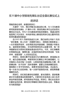 在X镇中小学排球先锋队出征全县比赛仪式上的讲话.docx