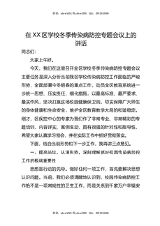 在XX区学校冬季传染病防控专题会议上的讲话.docx