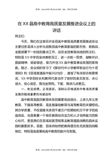 在XX县高中教育高质量发展推进会议上的讲话.docx