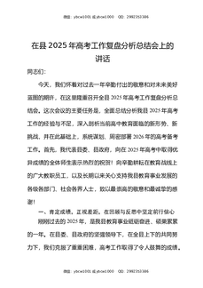 在县2025年高考工作复盘分析总结会上的讲话.docx