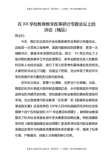 在XX学校教育教学改革研讨专题会议上的讲话(精品).doc
