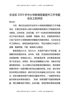 在全区2025年中小学教育质量提升工作专题会议上的讲话.doc