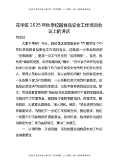 在学区2025年秋季校园食品安全工作培训会议上的讲话.doc