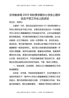 在市教体局2025年秋季学期中小学生心理评估及干预工作会上的讲话.doc