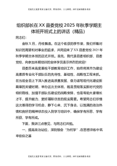组织部长在XX县委党校2025年秋季学期主体班开班式上的讲话(精品).doc