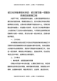 初三化学备课组长讲话:初三复习是一项复杂而艰巨的智慧工程.docx