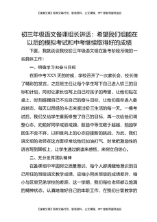 初三年级语文备课组长讲话:希望我们组能在以后的模拟考试和中考继续取得好的成绩.docx