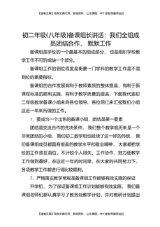 初二年级(八年级)备课组长讲话:我们全组成员团结合作,默默工作.docx