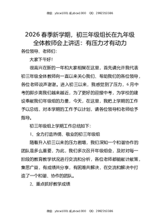 2026春季新学期,初三年级组长在九年级全体教师会上讲话:有压力才有动力.docx