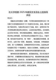 在大学党委2025年度民主生活会上的指导讲话.doc