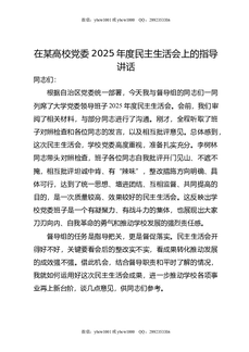 在某高校党委2025年度民主生活会上的指导讲话.doc