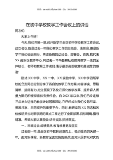 在初中学校教学工作会议上的讲话.docx
