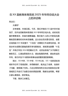 在XX县教育体育系统2025年年终总结大会上的讲话稿.doc