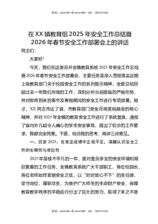 在XX镇教育组2025年安全工作总结暨2026年春节安全工作部署会上的讲话.doc