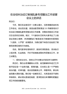 在全校纠治征订教辅乱象专项整治工作部署会议上的讲话.docx