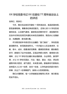 XX学校党委书记XX在建校77周年座谈会上的讲话.docx
